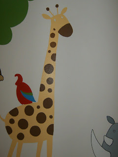 I really like the nursery, he did a fantastic job. I hope he is outlining the giraffe's eyes though, it looks a little creepy right now.